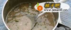 6油60克烧热,然后将香料和面粉倒入搅拌匀,冷确后加入香葱拌匀,这就是葱油酥。