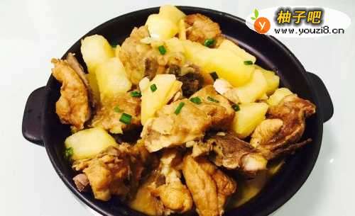 5排骨少了10分钟左右之后把切好的土豆块倒进去焖,再加一点开水,盖上锅盖焖10分钟。