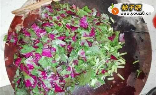 4倒入红菜翻炒