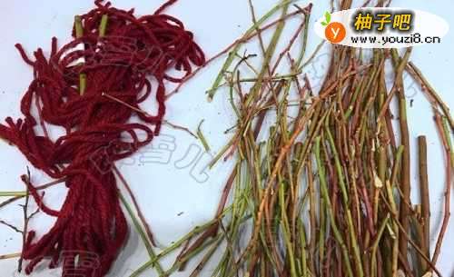 6然后在四个角的交叉处再用毛线捆紧固定。