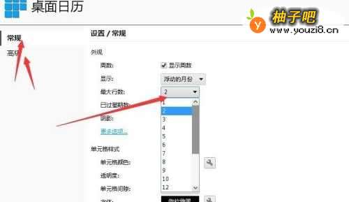 8并且在桌面上可以看到,默认的设置,一般是四行,也就是一个月,我是设置的2行,,也就是两周;如图