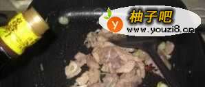 4锅里少倒一些油,把肉放锅里文火煸炒