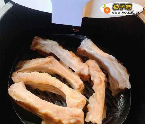4气炸锅200度,放入骨并喷上少许油,气炸约15分钟,中途抽出来翻面及喷油,气炸至金黄脆身。