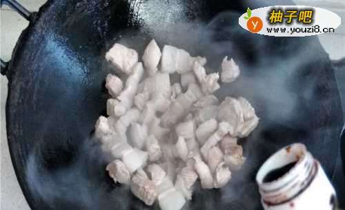 4将沥干水分的猪肉放入锅中。