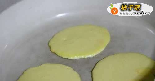 7再然后,煎到圆饼表面凝固后翻面,继续煎到圆饼表面微黄出锅