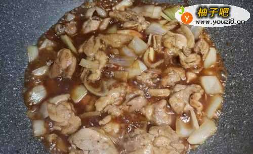 4放回鸡肉淋入酱汁翻炒稍收汁,调味。