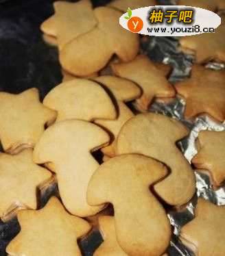 7把做好的饼干排在铺了锡纸的烤盘上;