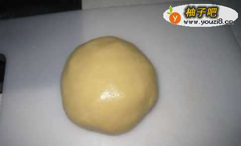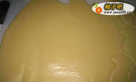 5把面团放在案柏树上,擀成厚约0.3厘米的面片;