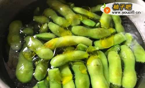 5煮一锅开水,加点油在水中(非常重要!),将毛豆倒入煮5分钟。