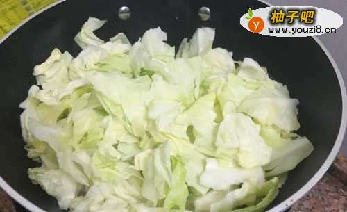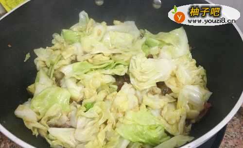 22. 倒入包菜,大火快速翻炒。
