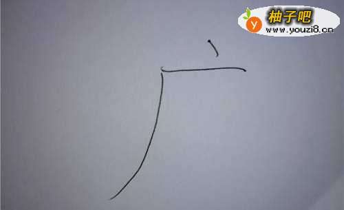 4. 第3笔:写一个长撇,这样一人“广”字头便出来了。