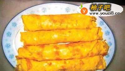 让后将蛋饼上铺上虾泥,卷成卷状,蒸20min左右