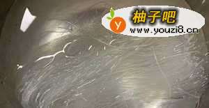 2把金针菇尾部切掉洗净,然后和泡软的粉丝摆盘,等着后面的步骤用