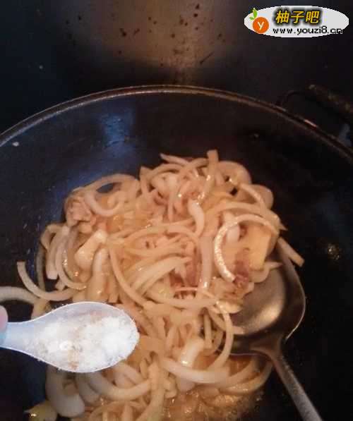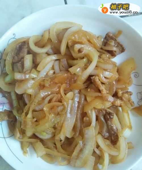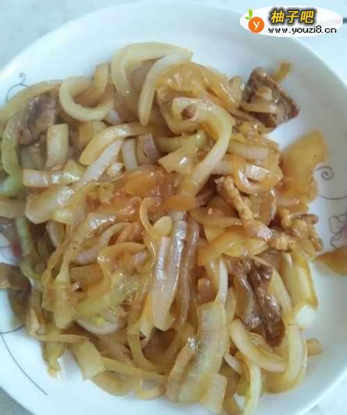 8将葱头炒软炒熟后,就可以出锅了,吃着甜甜的,一点辣味也没有了。