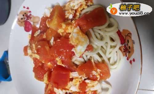 6这种带汁液的番茄炒蛋最适合配面条。煮一份儿面条,浇上番茄蛋的汁液,唇齿间都流露这番茄蛋的芳香。