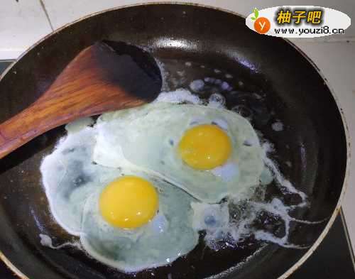 2先炒鸡蛋。在平底锅内放入花生油,需要用大火烧热,要一种爆炒的感觉。这需要打开油烟机,爆炒产生的油烟比较多。