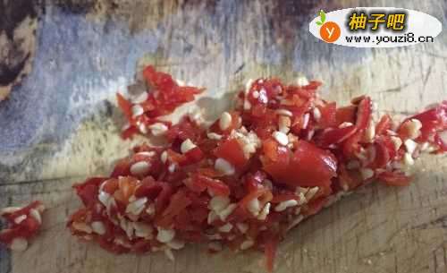 2把大蒜、辣椒切成粉沫,分清楚不要混合了。