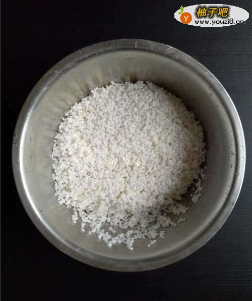 6糯米用凉开水冲洗至不沾手的状态,稍稍晾干水分;