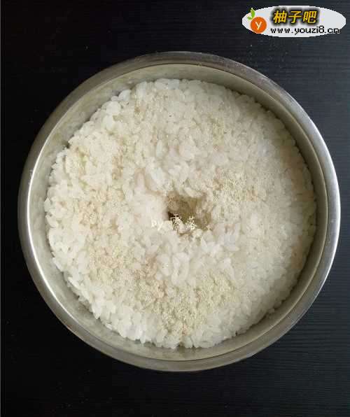 7放入2/3甜酒曲;搅拌均匀;