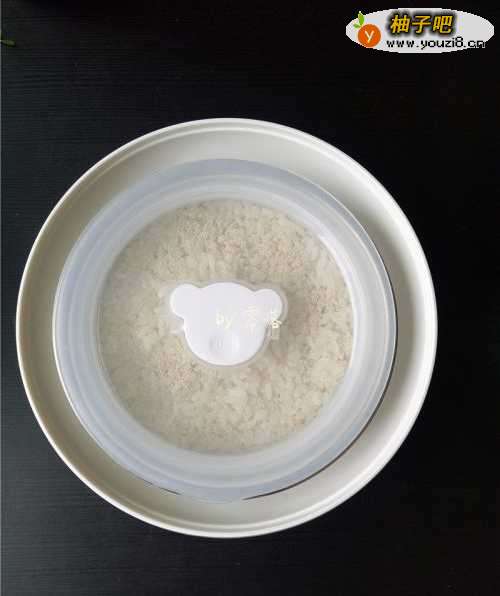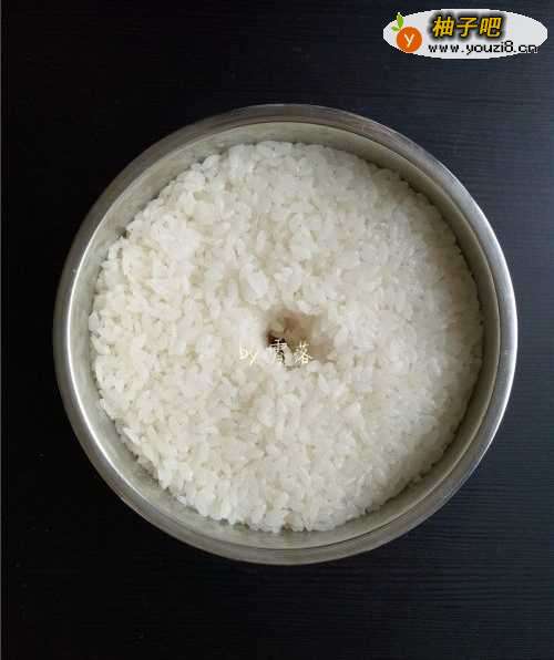 8将酸奶机内胆彻底消毒后,将糯米放入内胆,用无油无水的勺子压紧,中间掏一个洞;