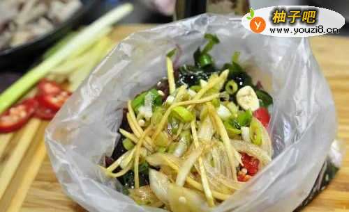 4海草放入塑胶袋或保鲜盒加入酱料,摇晃均匀