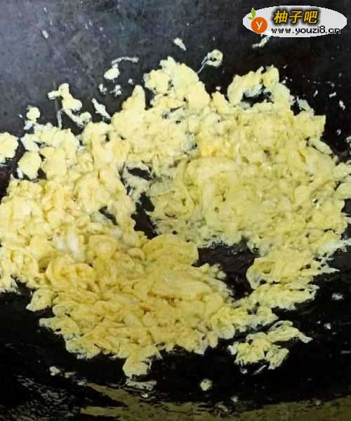 搅拌鸡蛋,倒入锅内炒成蛋花。