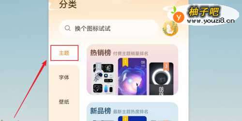 2进入【分类】页面,点击【主题】。