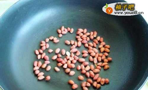 3锅加热后倒入花生米,不断翻炒至能轻松去掉皮即可盛出