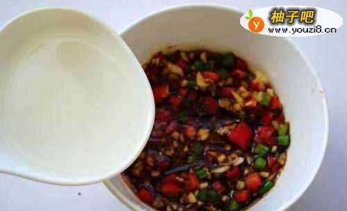 7舀一勺热水倒进调味汁里搅拌均匀