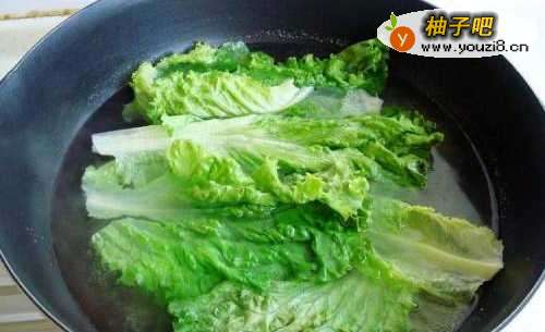 6将生菜放进水里焯烫几下即可