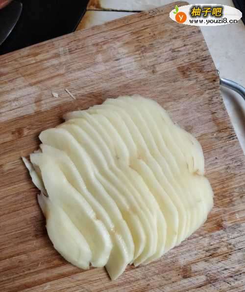 3第三步:将清洗干净的土豆切成薄薄的土豆片
