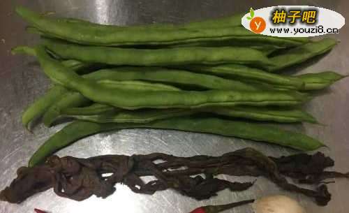 2四季豆洗干净,斜切;梅干菜洗干净,切小段;蒜头切末;辣椒斜切片
