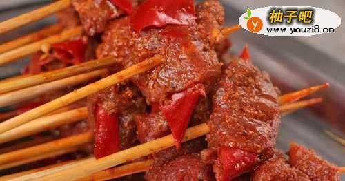 4荤菜-喷火牛肉,串串香菜品中的佼佼者,牛肉精选的是花展肉,长时间烹煮也不会显老,入口爽嫩Q弹,具有补气血、健脾胃的功效;因为牛肉本身夹裹有辣椒,所以只适合在红汤锅里烹煮,5-8分钟左右即可食用。