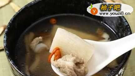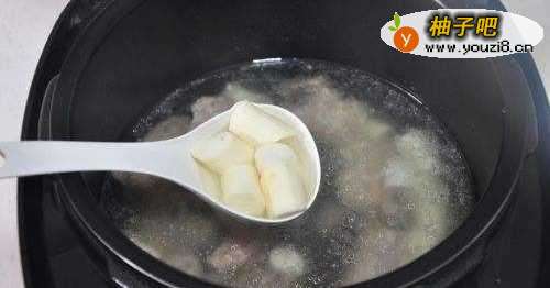 4煮20分钟,捞出葱结,放山药,开中火沸腾后再转小火