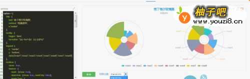 8这里随便点开一个”南丁格尔玫瑰图“,仍是左边是编程界面,稍微有点编程基础的亲就能在里面进行参数修改,之后点击”刷新“后,就会出现各位亲自己需要的图。当然对于配色不满意的,可以点击下方的”切换主题“,百度已经提供了很丰富的配色模板,作者认为是棒棒哒,基本够用了。当然亲不满意,在左边的编程框里面增加color参数就是了。。。要记住编程是万能的,万能的,万能的。。。