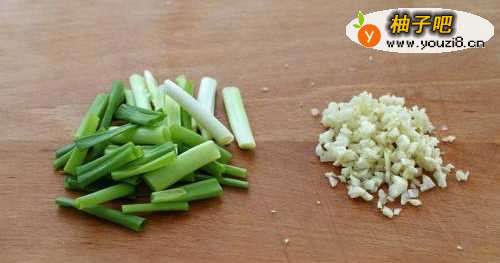 4小葱切成段、大蒜剁成蒜末