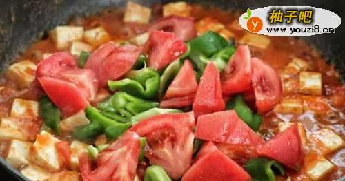 9再放入剩下的西红柿和青椒