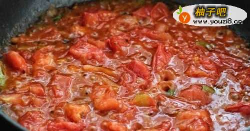 6加入一半的西红柿,小火炒出汤汁