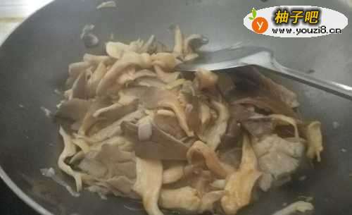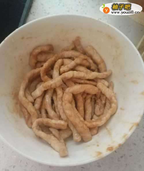 2将肉丝过油炒一下,一变色就将其盛出,以防炒老。