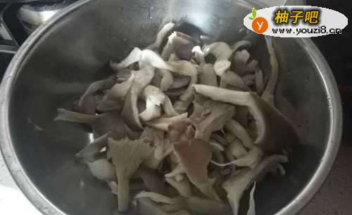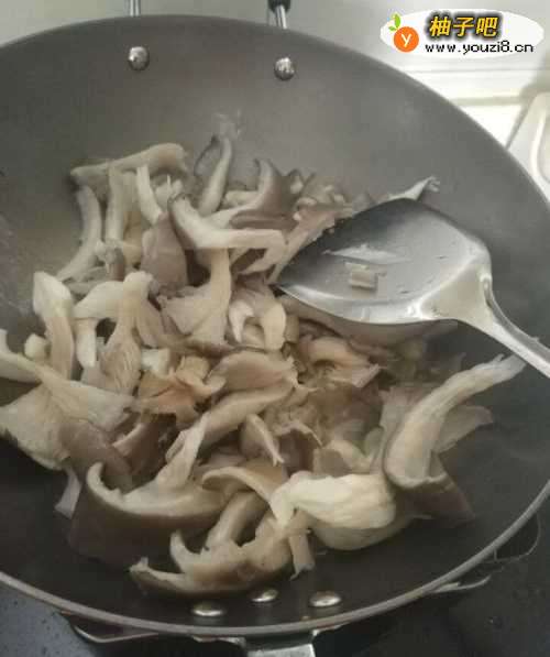 平菇洗净备用。。先用一小勺淀粉和少许酱油将肉丝拌匀,(这一步是为了保持肉丝的鲜嫩口感。)