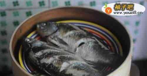 (蒸好后碟子里会有很多汤汁,将汤汁倒掉,鱼身下的紫苏杆去掉)