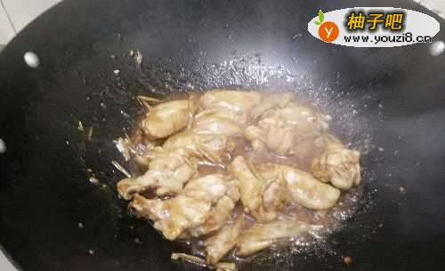 9此时可以倒上我们调好的酱油,进行翻炒后盖上锅盖。