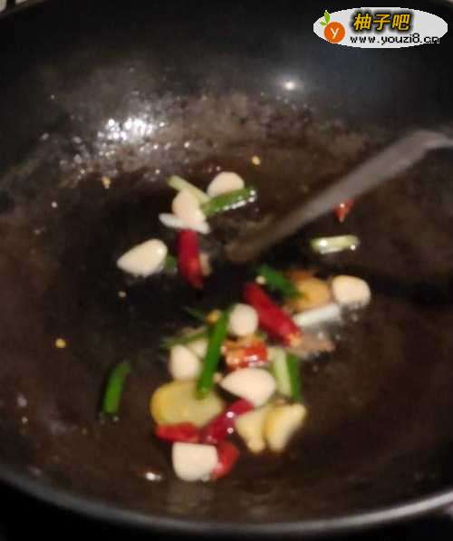 4起锅热油,放入葱姜和蒜以及辣椒,爆炒出香味