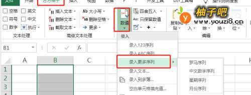 4在【数值录入】功能组,选择【数值】下三角按钮→【录入更多序列】→【子丑寅卯序列】
