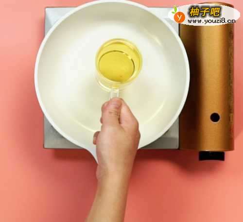 4这时候,锅中放油,将油温烧至七成熟;
