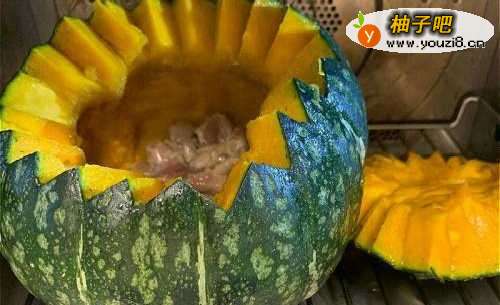 5将已炒到八成熟材料一齐放入南瓜盅,再蒸10分钟即可。