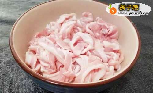 3煮一锅滚水,将猪肉片汆烫至8分熟后捞起备用