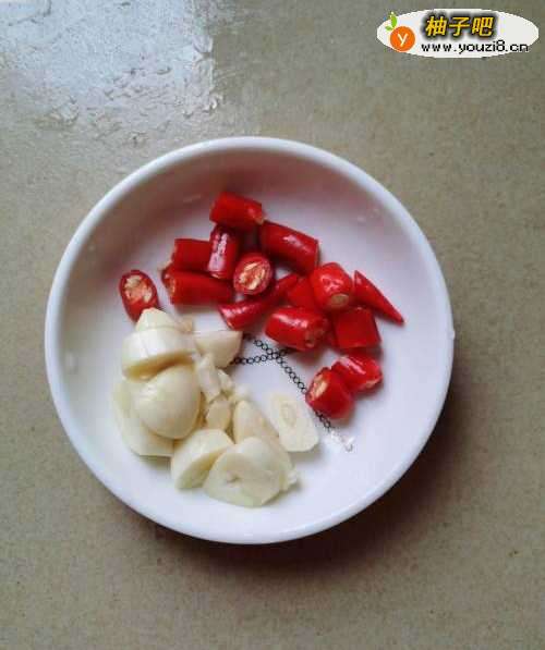 3蒜和小米椒洗净切好备用