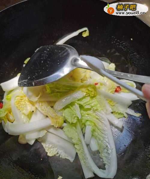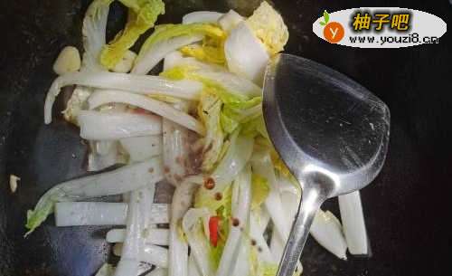 5倒入白菜,翻炒均匀