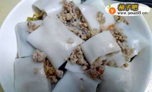 家常“”咸菜肉沫粿条卷“简易制作方法